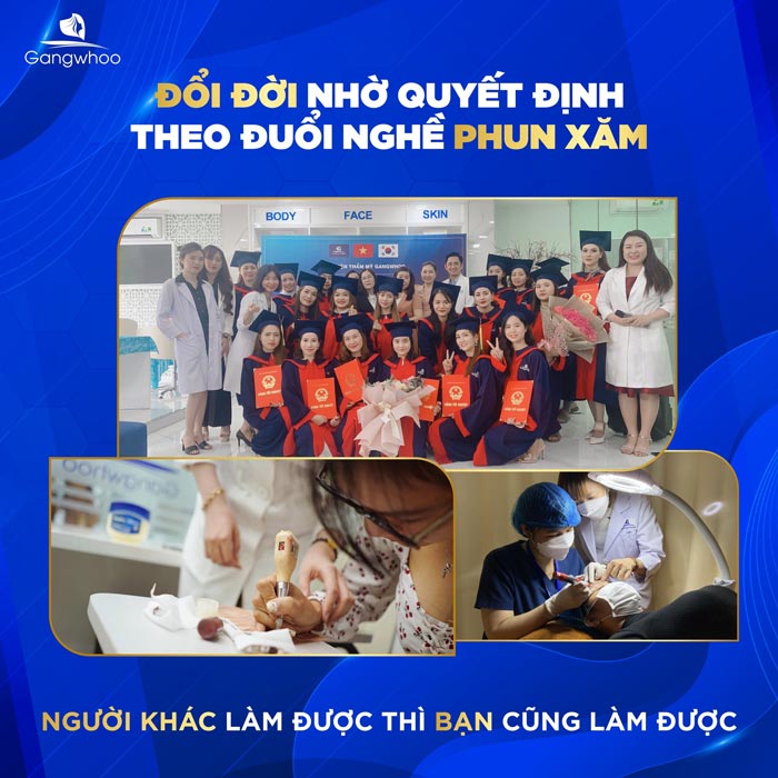 Làm đẹp và chăm sóc toàn diện cho bản thân là nhu cầu của hầu hết mọi đối tượng trong đời sống hiện nay. Chính vì vậy mà cơ hội phát triển nghề nghiệp đối với các học viên trong ngành thẩm mỹ luôn luôn rộng mở và dự đoán sẽ còn “bùng nổ” hơn nữa trong những năm tới. Với những ưu điểm vượt trội mà Trung tâm Đào tạo Thẩm mỹ – Bệnh viện thẩm mỹ Gangwhoo đang sở hữu, thì đây là nơi vô cùng xứng đáng để bạn gửi gắm sự tin tưởng, bởi việc đào tạo ra những học viên giỏi tiếp nối những tinh hoa của thế hệ trước là mục tiêu hướng đến BVTM Gangwhoo.